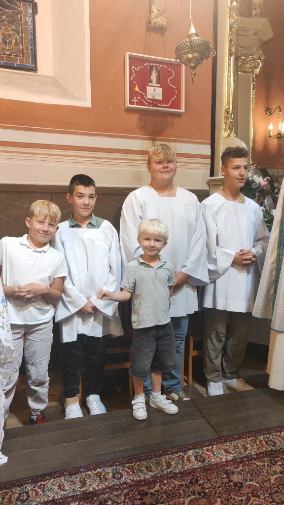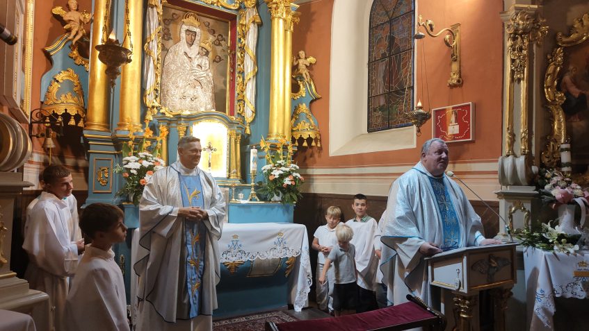 Wczoraj tj. 5 września rozpoczęliśmy bezpośrednie przygotowanie do obchodów 25 lecia koronacji Cudownego Wizerunku Matki Bożej- Królowej Domaniewic. Przybyli Parafianie z Reczyc, Krępy, Błot Krępskich i Grudz. Pątnicy przeszli kilka kilometrów, by zanieść przez oblicze Matki swoje prośby, intencje i błagania. Po przybyciu na miejsce rozpoczęliśmy wspólny śpiew pieśni maryjnych, różaniec. O godz. 18.00 rozpoczęła się Msza Św. z nauką rekolekcyjną, która w tym roku głosi Ks. dr Paweł Piątek kapelan Wojska Polskiego.
